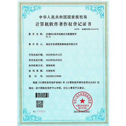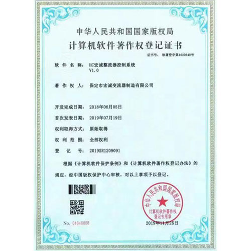計(jì)算機(jī)軟件著作權(quán)登記證書--HC宏誠整流器控制系統(tǒng)V1.0