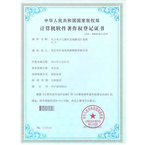 • 計(jì)算機(jī)軟件注冊(cè)權(quán)登記證書(shū)——電力電子元器件及電路設(shè)計(jì)系統(tǒng)V1.0