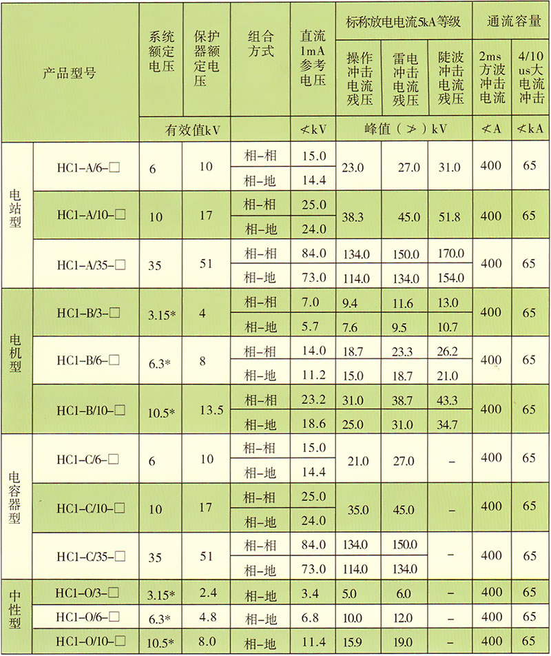 A、電站型:適合各種變壓器、開關、母線的過電壓保護
